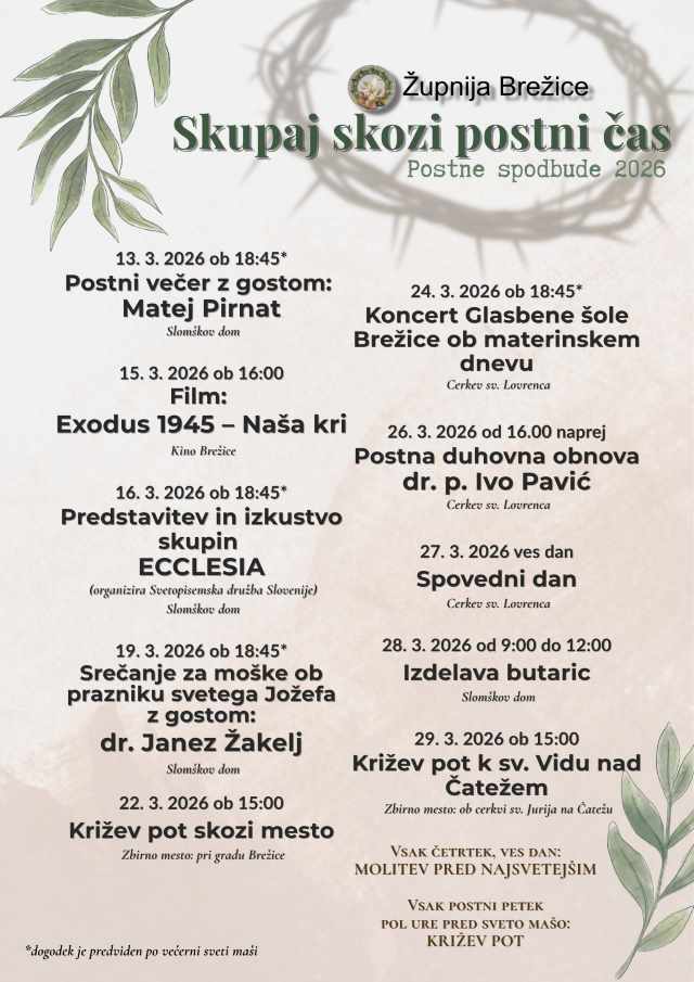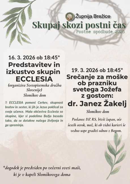 “Na drugem postnem večeru nas je obiskal tajnik škofijske Karitas Matej Pirnat, velik poznavalec teologije in Svetega pisma, predvsem pa človek z veliko začetnico. Preko dnevne Božje besede nas je na nežen način uvedel v razmislek o lastnih zmotah in grešnosti ter Bogu, ki nas neutrudno išče in izkazuje svojo neizmerno ljubezen. Kot rosa, ki nas nežno orosi in poživi, če smo v puščavi pa nas celo dvigne v življenje, tako Bog obljublja, da bo naredil s svojo ljubeznijo. Postni čas je priložnost, da obnovimo odnos z Bogom in drug z drugim ter se spustimo tudi v svoje lastne globine, da bi v njih ponovno zaživeli, zacveteli kot lilija, pognali korenine kot cedra, ozeleneli kot cipresa, se razdajali kot oljka, širili prijaznost in iskrenost kot vonj kadila, bili delavni za boljši svet, se veselili v hvaležnosti za vse, kar nam je dano in bili drug drugemu senca v času stisk.”