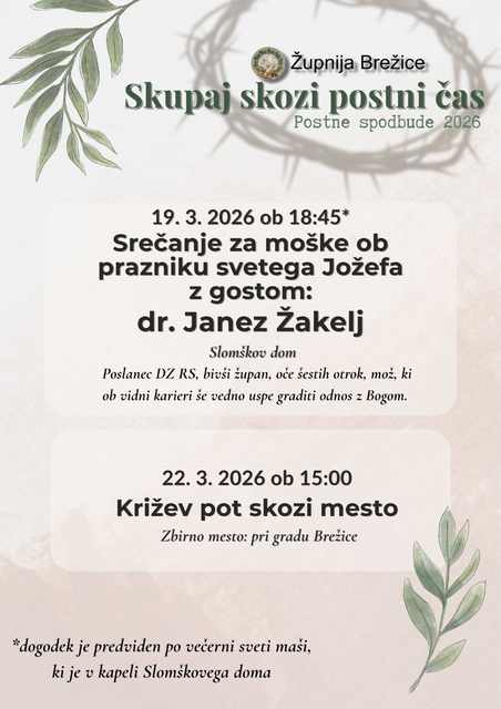 V Slomškovem domu Brežice je, 19. marca 2026, potekalo srečanje z uglednim gostom, poslancem Državnega zbora mag. Janezom Žakljem. Na Jožefovo, ko je bil ob tem tudi “moški večer”, je gost spregovoril o svojem življenju, karieri diplomata, župana in sedaj poslanca DZ. Ob vsem tem pa se seveda trudi po zmožnostih tudi odgovorno opravljati poslanstvo moža in očeta v svoji družini.